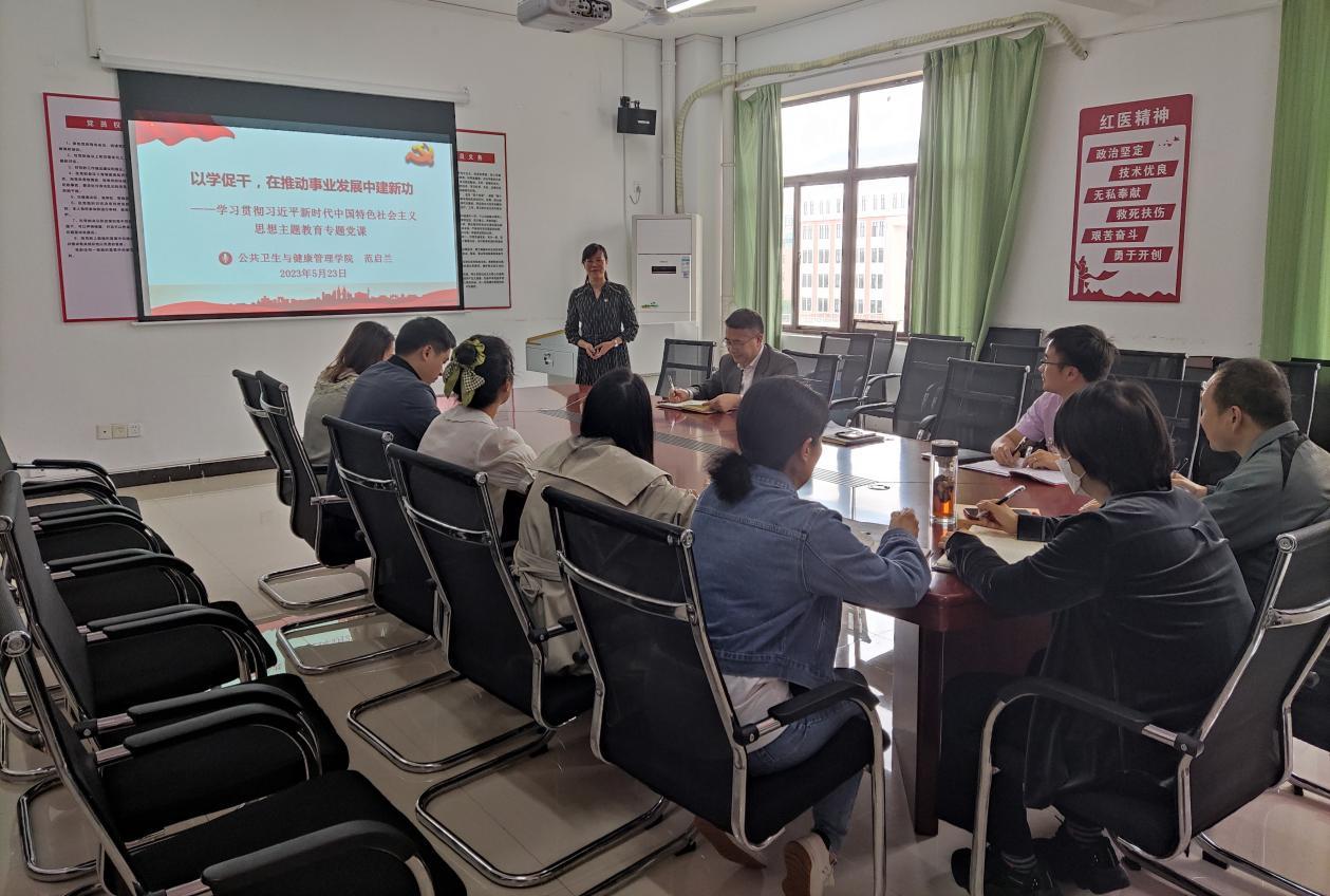 5月23日,公共卫生与健康管理学院党委书记范启兰以《以学促干,在推动事业发展中建新功》为题,为所在学院教工第二党支部全体党员教师讲授专题党课。