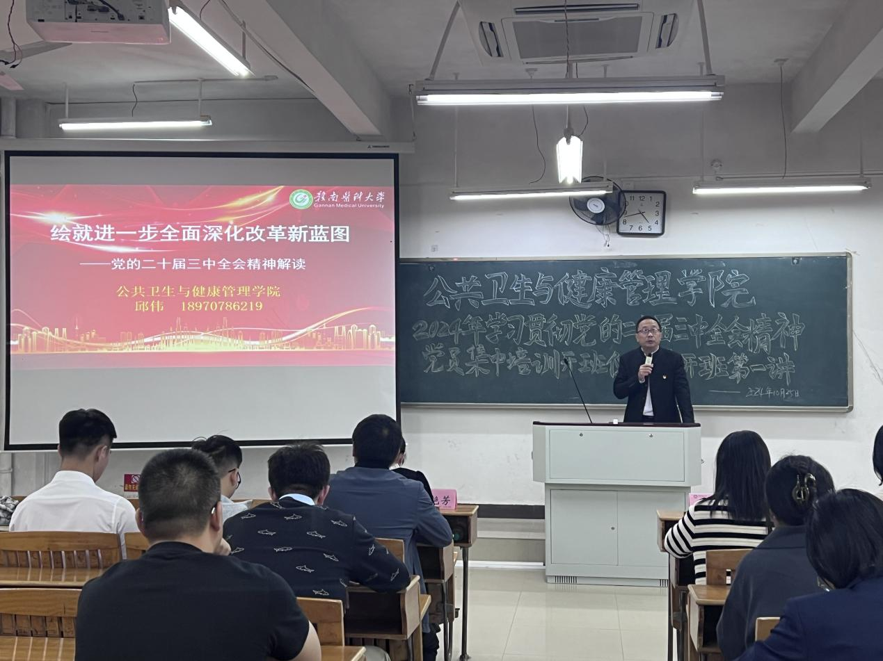 公共卫生与健康管理学院举行2024年学习贯彻党的二十届三中全会精神党员集中培训班开班仪式暨培训第一讲