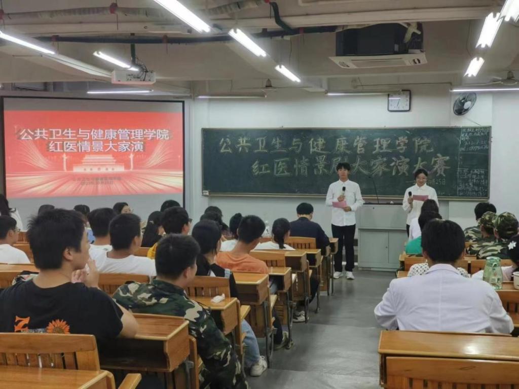 10月29日晚,公共卫生与健康管理学院在黄金校区举行“红医情景大家演”主题情景剧表演比赛,该院学工办辅导员及2023级学生代表100余人参加。