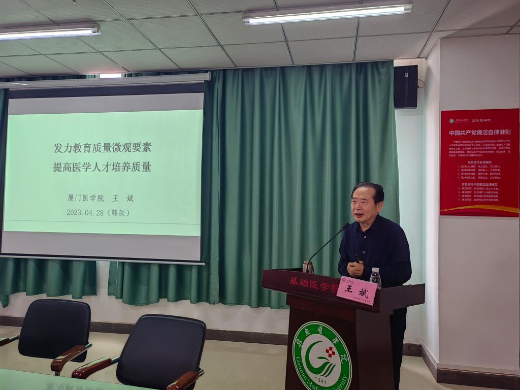 4月28日上午,全科医学学院邀请厦门医学院王斌教授在黄金校区开展“发力教育质量微观要素 提高医学人才培养质量”专题讲座,该院全体教职工及基础医学院教师代表60余人参加,全科医学学院党委副书记、院长罗晓婷主持。