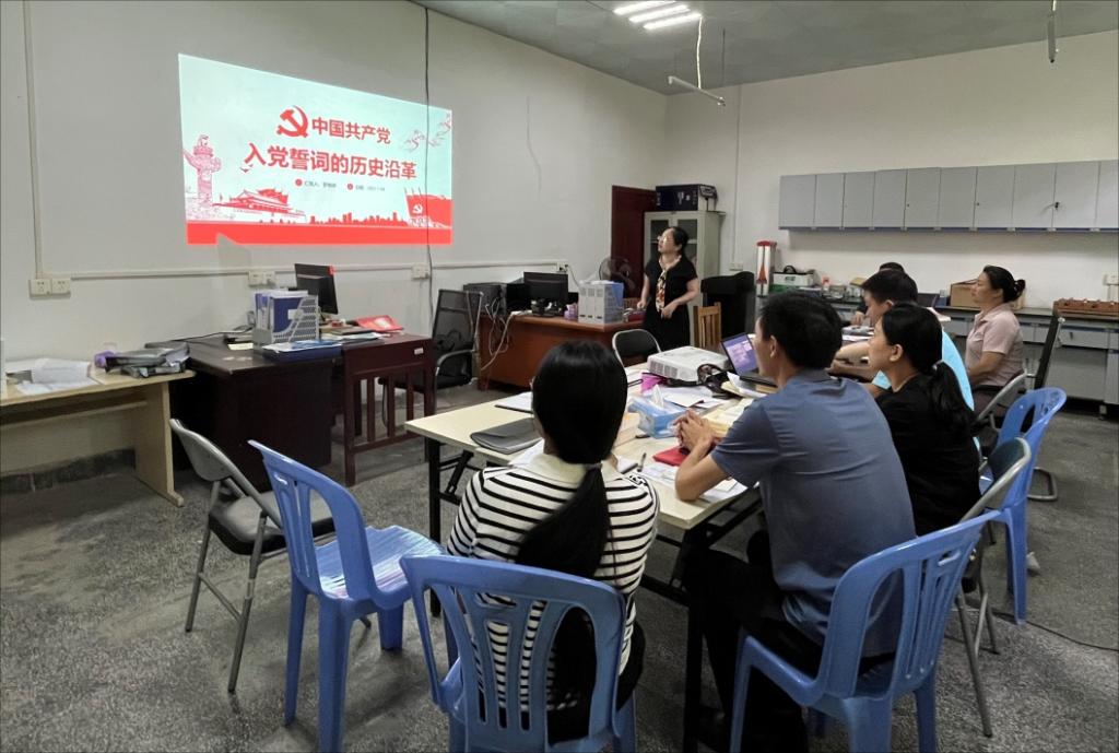 罗晓婷以“中国共产党入党誓词的历史沿革”为题,和大家一起追寻了党的诞生、发展和壮大百年奋斗历程。她指出,中国共产党的入党誓词,是新党员在入党时对党和人民作出的庄严承诺,同时也是党员必须遵守的行为准则,理解入党誓词,是每一个共产党员的必修课,也是读懂中国共产党的一把钥匙。