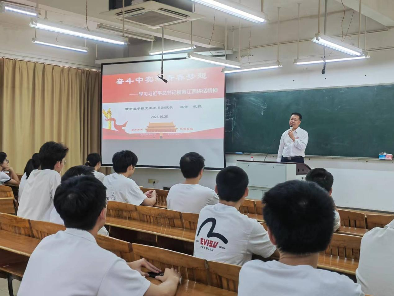 10月25日,校党委委员、副校长廖伟以《奋斗中实现青春梦想》为题给全科医学学院2021级临床医学(全科医学方向)本科1班“红医班级”上了一堂令人印象深刻的思政课。