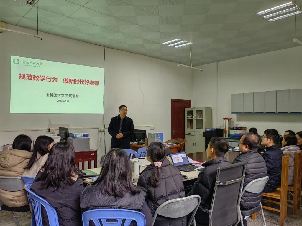 2月25日,全科医学学院在章贡校区开展“规范教学行为,做新时代好老师”师德师风专题讲座。学院党委委员、副院长周爱琴主讲,全体教师参加。