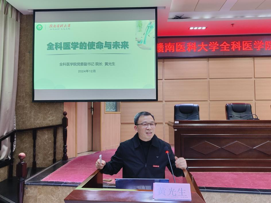 黄光生从“在全科学什么、在全科怎么学、学成后怎么样”三个方面,向学生讲述了全科医学生的使命与未来。通过专业思想教育,帮助学生提前做好学业规划、营造良好学风,增强专业自信和职业认同感。同时,他还分享了自己的求学成长过程,激励同学们涵养家国情怀,秉承医者仁心,练就过硬本领,点亮全科的未来,也点亮自己人生的未来。