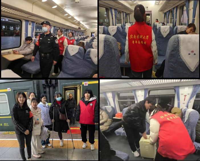 全科学子身着统一的志愿者衣服,为旅客提供行李搬运、问询引导等贴心服务,同时还特别关注关心老年人、残疾人等特殊群体。每一次贴心的服务、每一句暖心的话语、每一声亲切的问候,甜在志愿者嘴里,暖在旅客心里,志愿者们耐心细致的服务获得了旅客们和乘警的好评与赞誉。