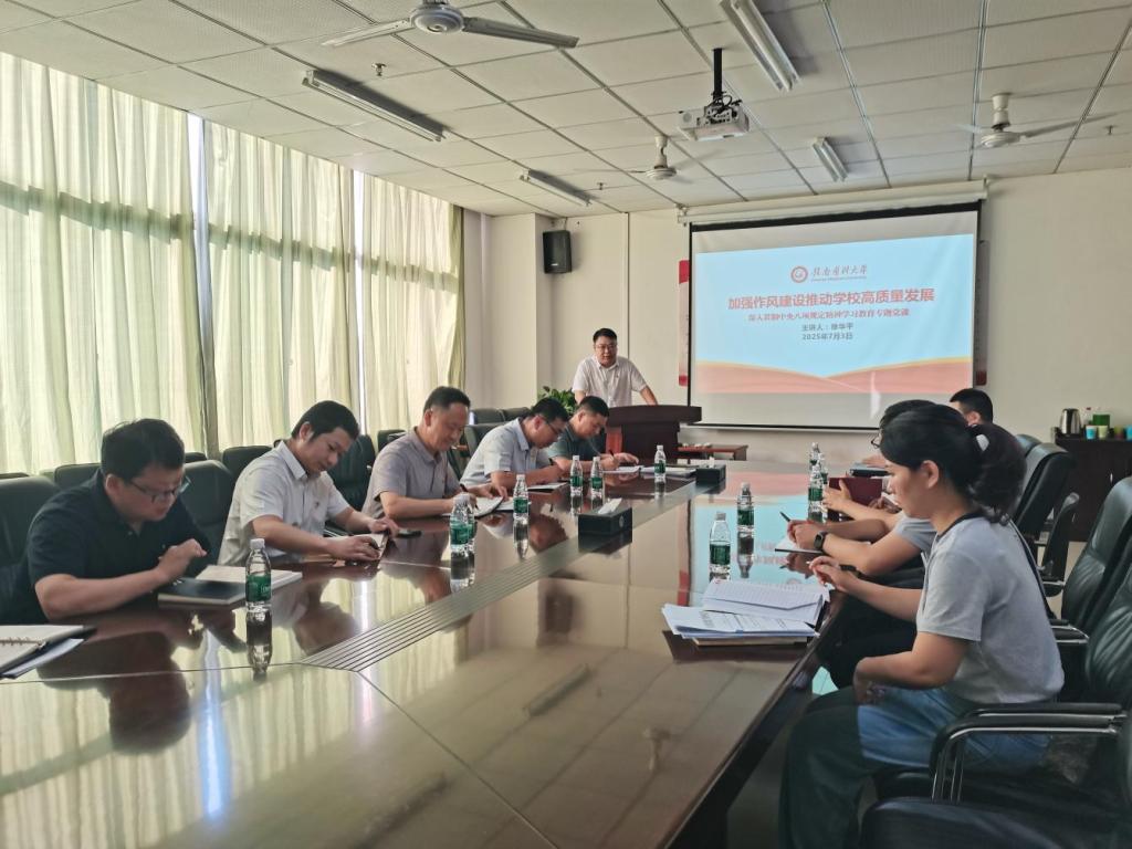 7月3日,学校党委常委、组织部部长徐华平以《加强作风建设推动学校高质量发展》为题,为所在党支部、联系学院(党支部)党员干部讲授深入贯彻中央八项规定精神学习教育专题党课。