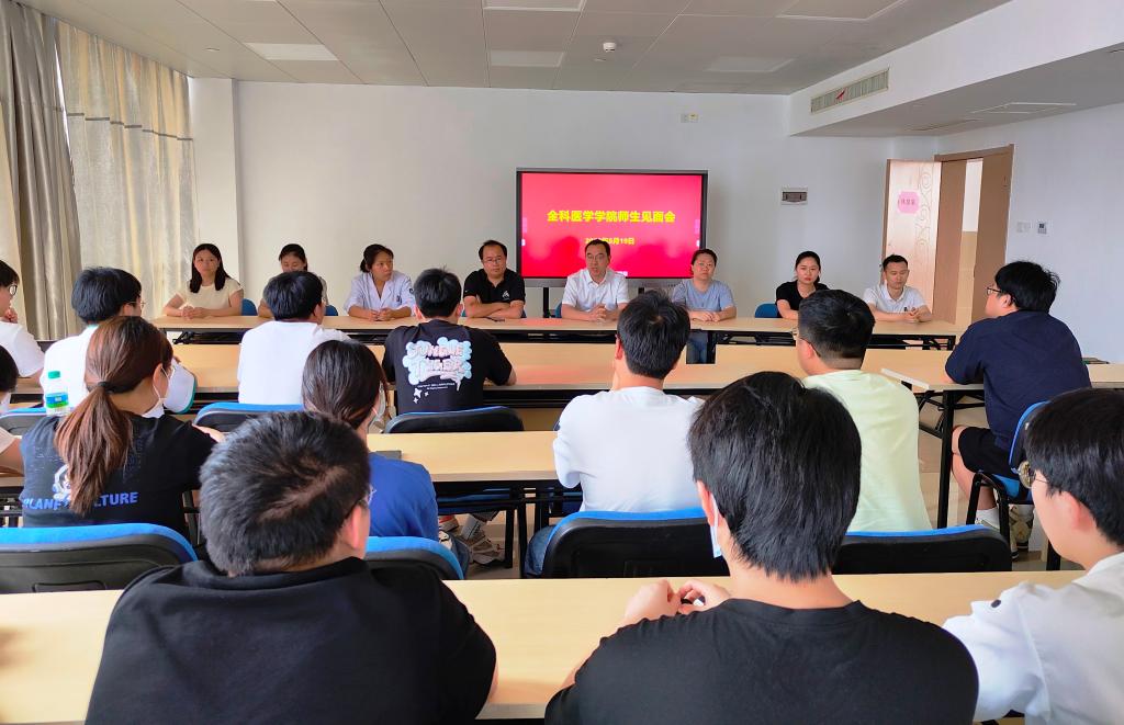 5月20日,2019级临床医学定向班从景德镇返回赣州参加临床医学专业水平测试,为更好地了解学生,给予学生关心关爱,全科医学学院在一附院黄金院区举办了师生见面会,该院副院长周爱琴、专任教师、辅导员、2019级临床医学定向本科班全体学生50余人参加。